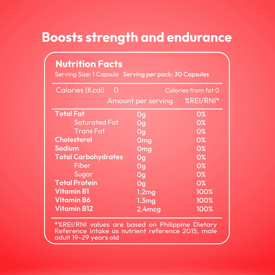 100mg CoQ10, 100mg Korean Red Ginseng, 200mg Arginine