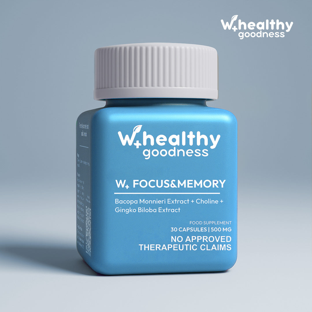 W+ FOCUS&MEMORY is designed to support cognitive performance, concentration, and mental clarity using a blend of bacopa monnieri, ginkgo biloba, and choline. It helps improve alertness and memory retention, especially during demanding days.